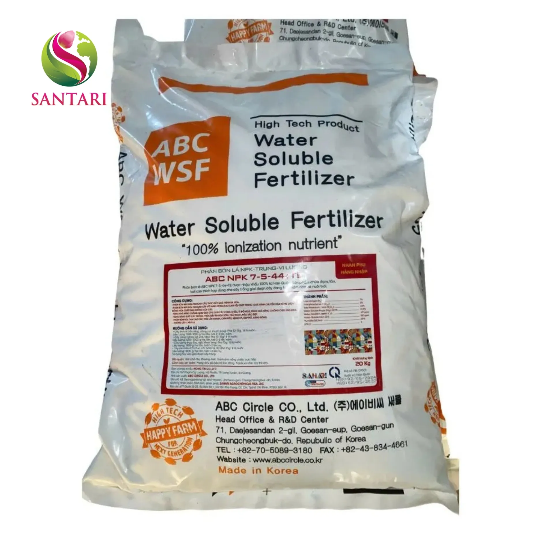 Sản phẩm thuộc dòng phân bón cao cấp ABC WSF – thương hiệu nhập khẩu độc quyền bởi Santari, đảm bảo hiệu quả thực tế cao, tan hoàn toàn trong nước, an toàn với cây trồng.